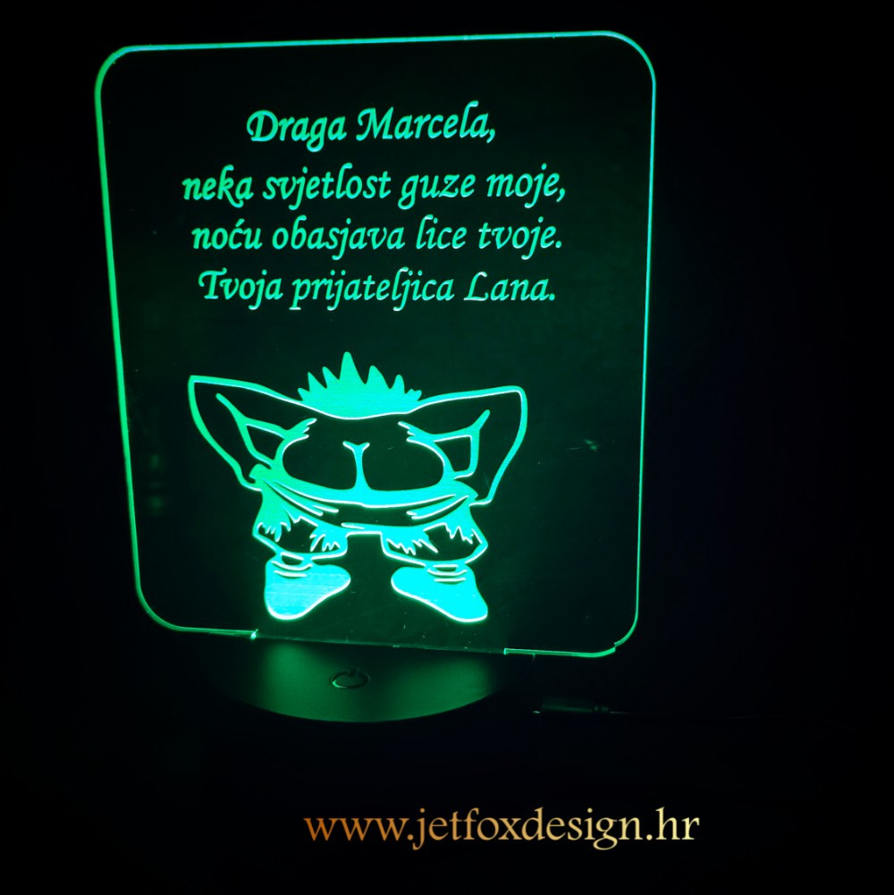 • Motivi i tekst se laserski graviraju na proizrni akril, te je gravra bijela, boje dolaze od osvjetljenja na postolju (RGB tehnologija)