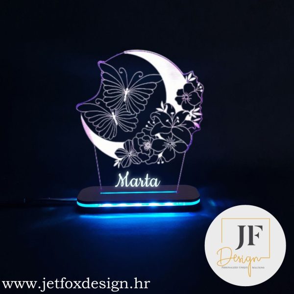- Motivi i tekst se laserski graviraju na proizrni akril, te je gravra bijela, boje dolaze od osvjetljenja na postolju (RGB tehnologija)