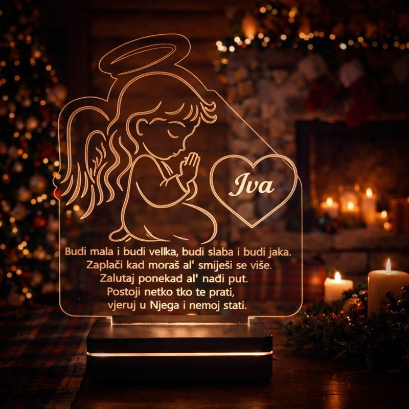 Akrilna lampa anđeo koji moli s imenom i posvetom