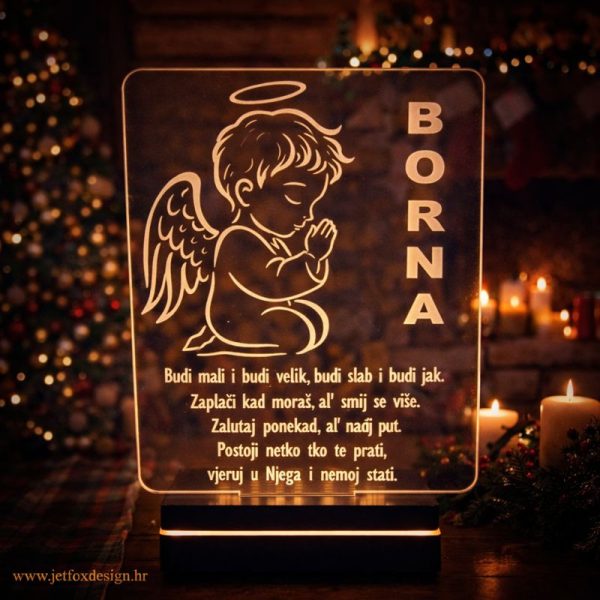Akrilna lampa anđeo molitva s imenom i tekstom