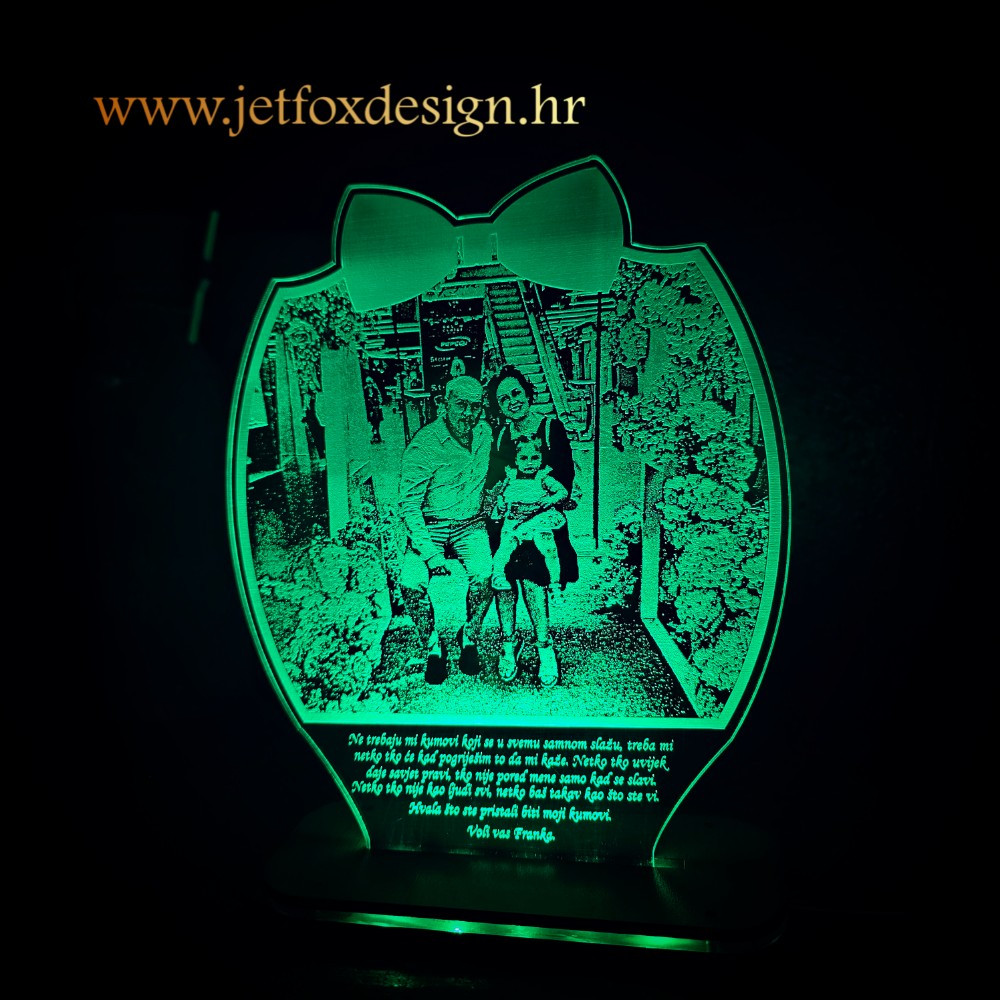Muškarci najviše reagiraju na poklone koji nose značenje, a ne na skupe ili raskošne stvari. Kada poklon uspije spojiti emociju, obitelj i svakodnevni podsjetnik na ono što im najviše znači, tada dobivate poklon koji ostavlja trag. Upravo takav učinak stvara akrilna lampa s obiteljskom fotografijom i motivom mašne — nježan i istovremeno snažan simbol ljubavi prema obitelji.