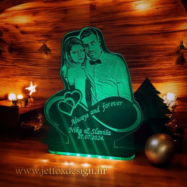 Akrilna LED lampa za Valentinovo s fotografijom i tekstom