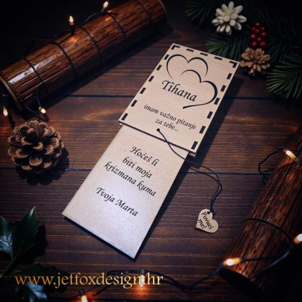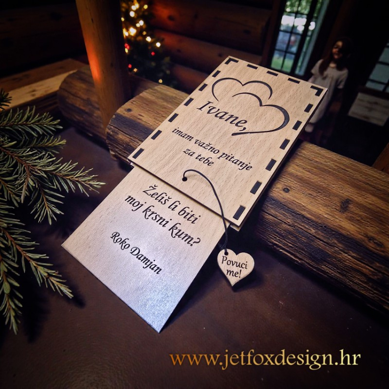 Drvena čestitka pitalica za kumu na izvlačenje
