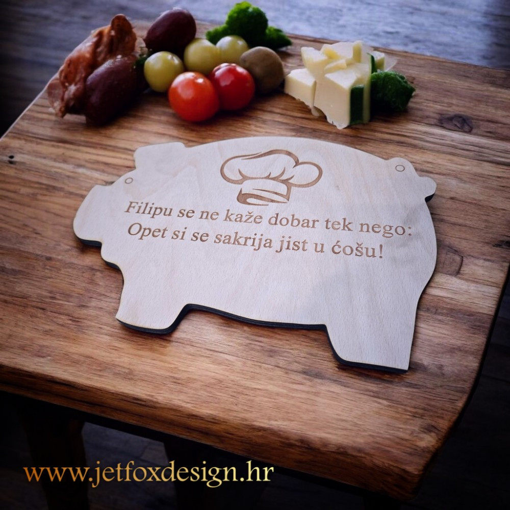 MyBoard daske izrađene su od laminiranog bukovog drveta debljine 6 mm, bez završne obrade i premaza. Daska je laserski rezana i gravirana iz ploče, zbog čega su na rubovima mogući vidljivi tragovi rezanja i paljenja. Ti tragovi su prirodan rezultat laserske obrade i daju dasci rustikalan, sirov izgled. Ova daska nije namijenjena za svakodnevno rezanje hrane niti za pranje u perilici posuđa ili s većom količinom vode. Prije svega, MyBoard je dekorativna i poklon-daska – simpatičan, personaliziran poklon koji je cjenovno pristupačan i pogodan za razne prigode. Ako tražite pravu dasku za rezanje, s dodatnom obradom i zaštitnim premazom, preporučujemo da odaberete Bambus modele, koji su namijenjeni redovnoj upotrebi u kuhinji.