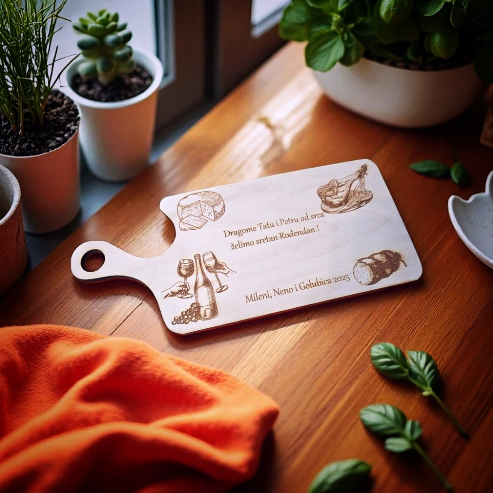 ✔ Poklon za kumove, prijatelje i obitelj – iznenadite ih unikatnom daskom s personaliziranim natpisom.
