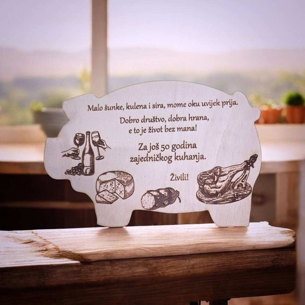 ✔ Odaberite gravuru s motivima sira, kulena i pršuta – idealno za ljubitelje domaćih delicija.