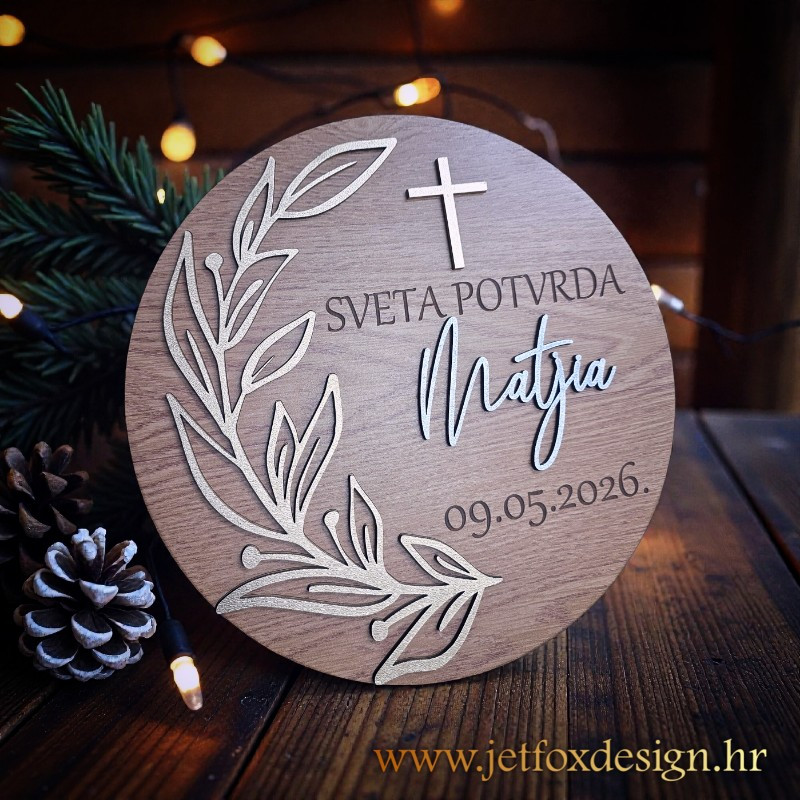 Drvena dekoracija za krizmu s maslinovom granom, imenom i posvetom poseban je, simboličan poklon koji obilježava jedan od najvažnijih sakramenata u životu mlade osobe. Motiv maslinove grane nosi snažnu poruku mira, blagoslova i duhovne zrelosti, dok personalizacija imenom i posvetom ovu dekoraciju pretvara u trajnu uspomenu.