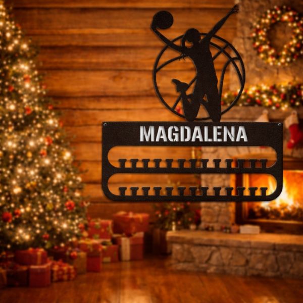 Personalizirani držač za medalje odbojka s imenom i motivom odbojkašice savršen je poklon za mladu sportašicu. Praktično i motivirajuće rješenje za izlaganje medalja.