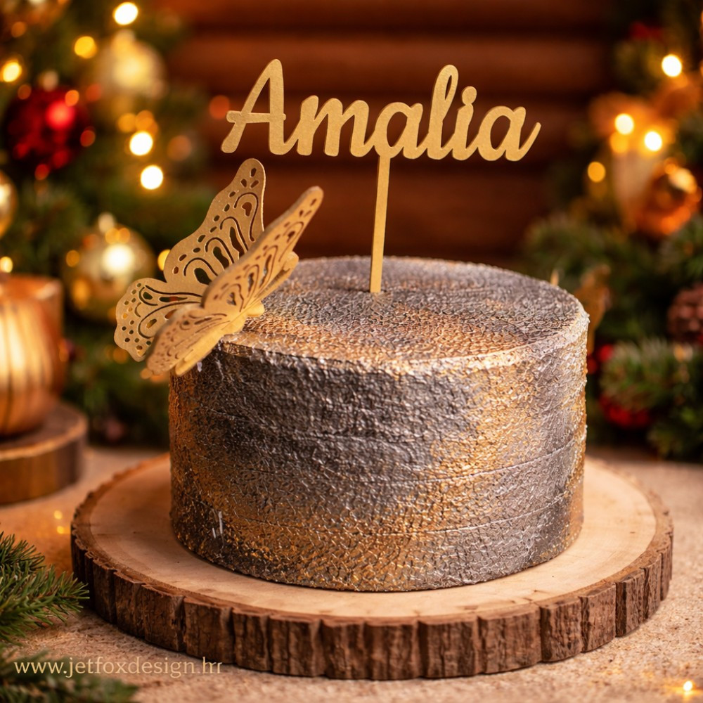 Personalizirani topper s imenom i 3D leptirom osmišljen je kao profinjena i otmjena dekoracija za torte raznih prigoda. Leptir simbolizira nježnost, slobodu i novi početak, dok ime po želji daje torti osobnu notu i čini je središnjim detaljem svečanog stola.