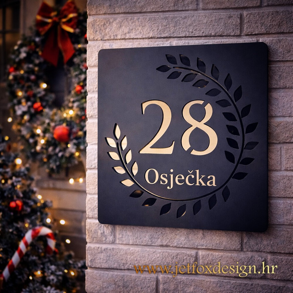 Minimalistički personalizirani kućni broj s reljefnim biljnim vijencem