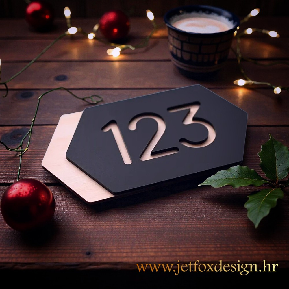 Osim što jasno označava dom, ovaj moderni personalizirani kućni broj s geometrijskim motivom podiže cijeli vizualni identitet kuće. Idealan je ako razmišljaš što pokloniti mužu, ženi, roditeljima, bratu ili sestri koji cijene uredan i suvremen dizajn. Njegova neutralna, ali elegantna forma lako se uklapa u različite stilove gradnje.