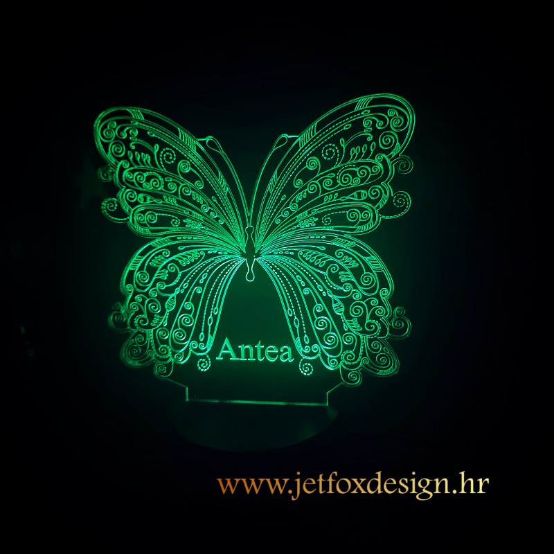 - Motivi i tekst se laserski graviraju na proizrni akril, te je gravra bijela, boje dolaze od osvjetljenja na postolju (RGB tehnologija)