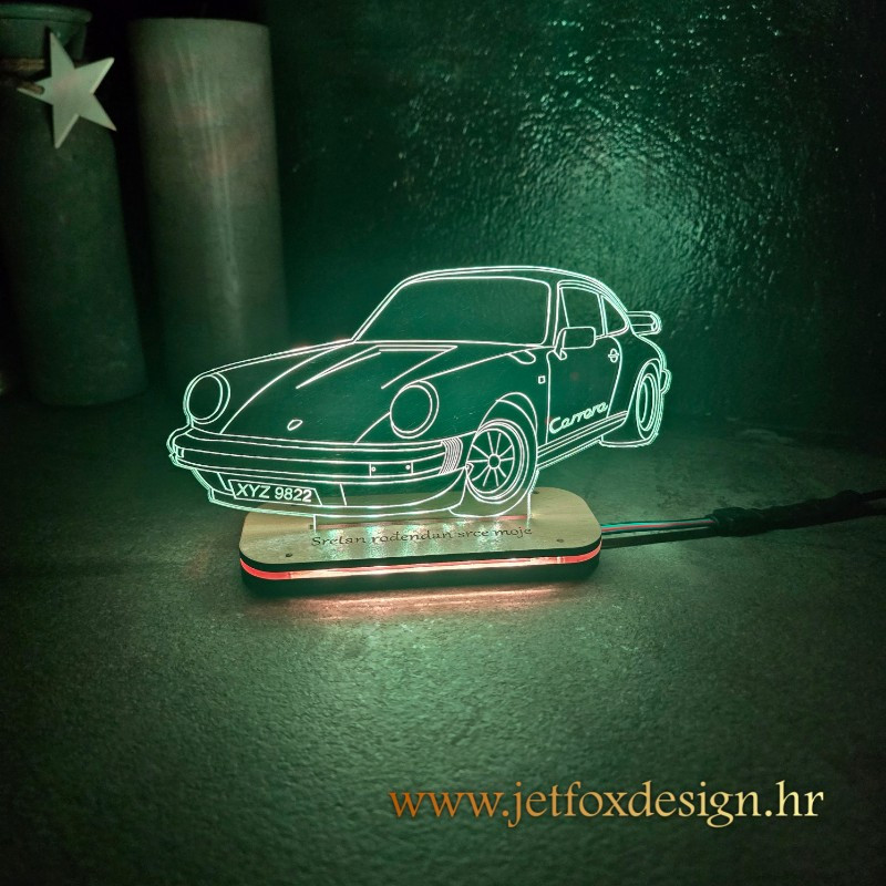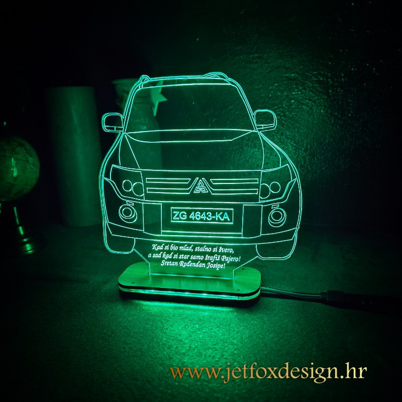 - Motivi i tekst se laserski graviraju na proizrni akril, te je gravra bijela, boje dolaze od osvjetljenja na postolju (RGB tehnologija)