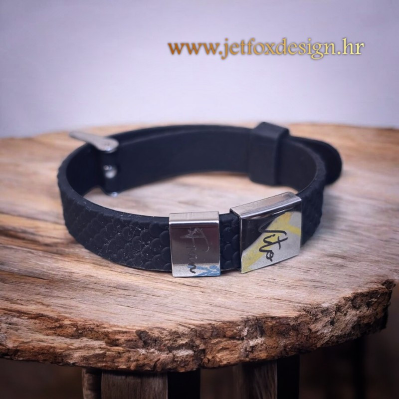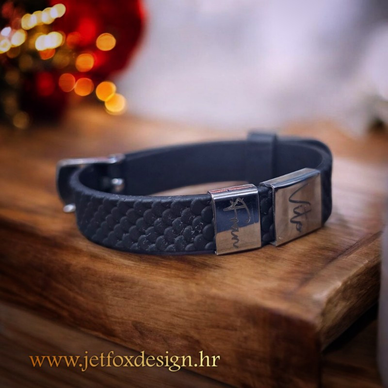 Personalizirana gumena narukvica s više čeličnih privjesaka i imenima moderan je i izdržljiv modni dodatak koji spaja praktičnost i osobnu priču. Fleksibilna gumena narukvica ugodna je za nošenje, dok svaki čelični privjesak može nositi ime, inicijal ili kratku riječ s posebnim značenjem. Više privjesaka omogućuje da na jednoj narukvici nosite više važnih osoba ili uspomena.