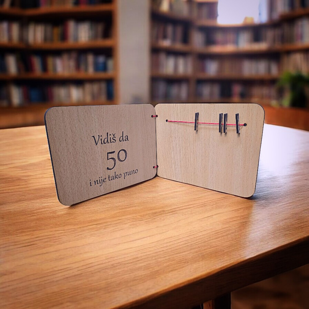Personalizirana čestitka za poklanjanje novca u obliku knjige s duhovitim natpisom Vidiš, ni X godina nije tako puno. Novčanice se vješaju na male štipaljke za efektan poklon. Idealno za rođendane i posebne prigode.