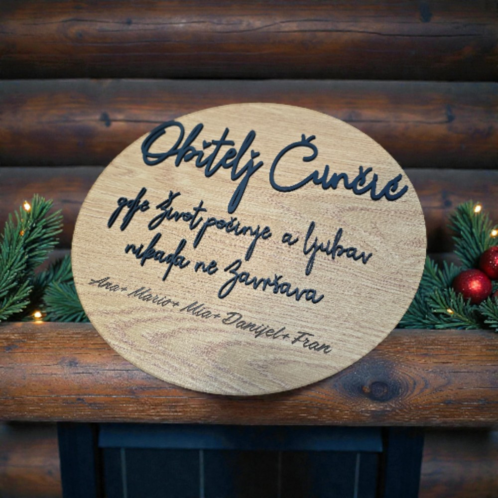 Drveni krug s obiteljskim natpisom nije samo dekoracija — on je svakodnevni podsjetnik na ljubav, zajedništvo i dom kojem se uvijek vraćamo.