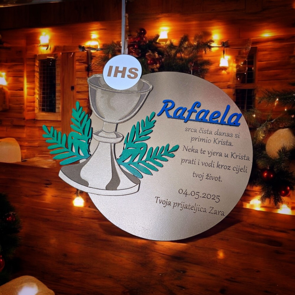 - Personalizacija: Ime, datum, tekst ili motiv, s opcionalnom posvetom na stražnjoj strani.