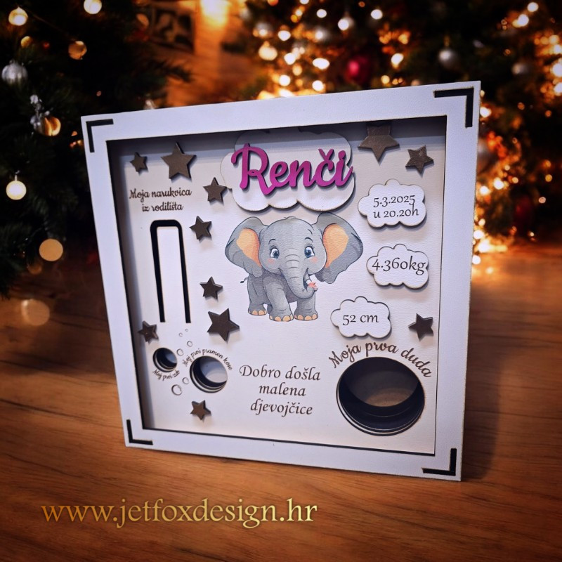 Naše personalizirane okvire uspomena dizajnirali smo s ljubavlju i pažnjom kako biste sačuvali najdragocjenije trenutke iz djetinjstva. Idealan su poklon za novorođenče ili dodatak vašem domu koji nosi posebnu priču. Okviri su prilagodljivi i mogu sadržavati ime bebe, datum rođenja, težinu, visinu i druge podatke, kao i prostor za čuvanje prvih bebinh stvari poput zubića, pramenova kose, pupčane vrpce ili narukvica iz rodilišta.