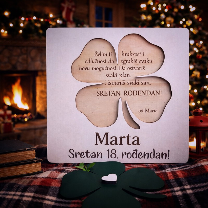 Zato što je jednostavna, ali iskrena. Zato što se pamti. I zato što pokazuje da si razmišljao o osobi kojoj je namijenjena. Personalizirana čestitka za sreću s djetelinom s četiri lista mali je predmet koji nosi veliku poruku.