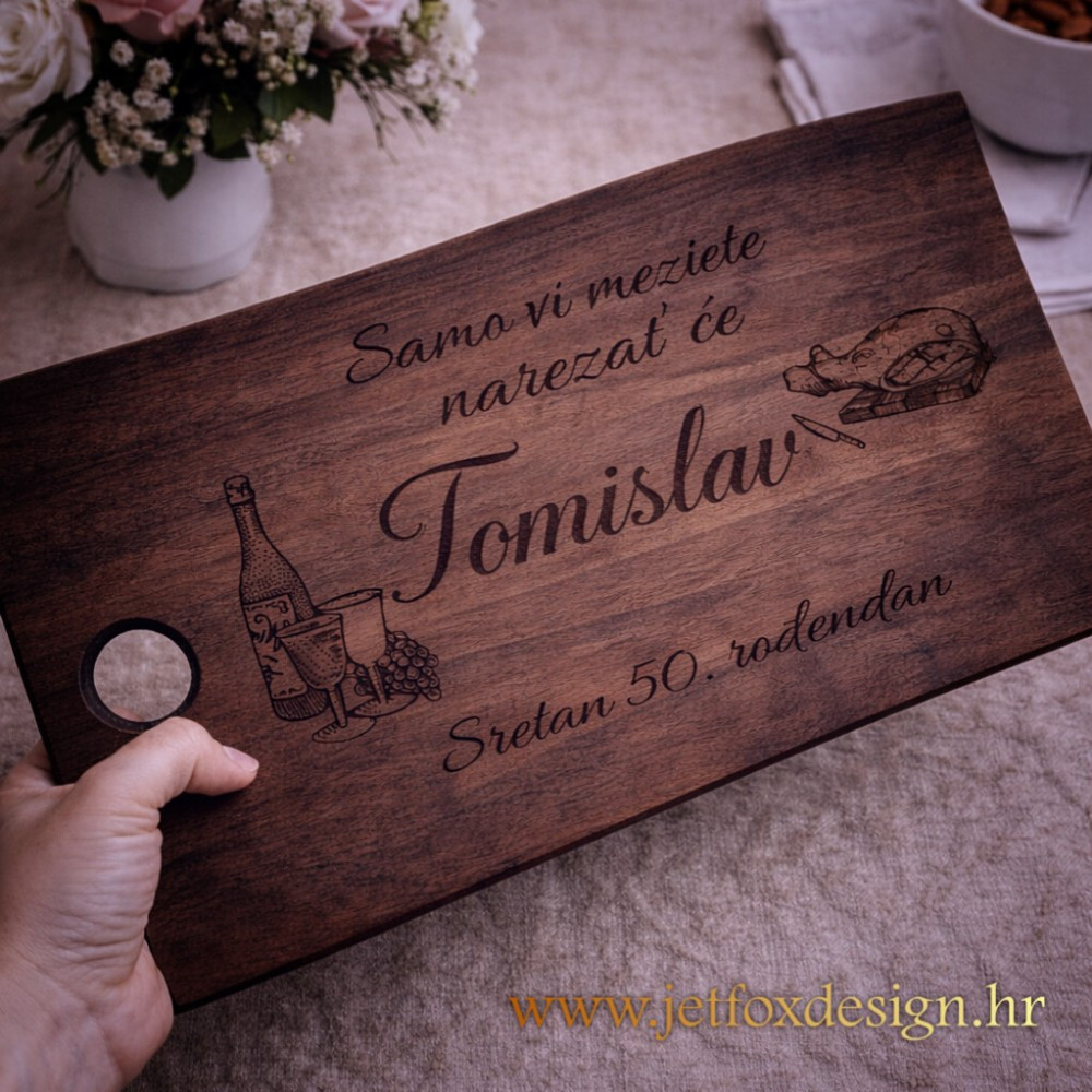 Za razliku od klasičnih darova, personalizirana daska za mezu ne završava u ladici. Koristi se kod kuće, na druženjima, roštiljima i obiteljskim okupljanjima, a svaki put iznova izazove osmijeh i komentar gostiju.