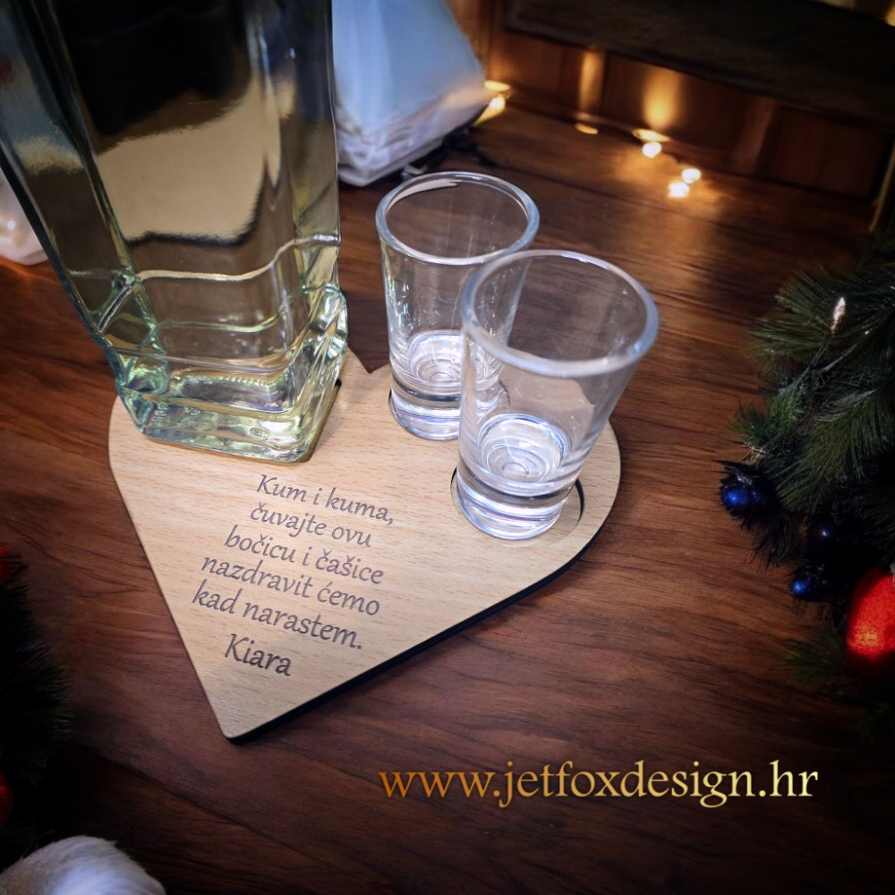 Drvena tacna za rakiju kao poklon za kumove