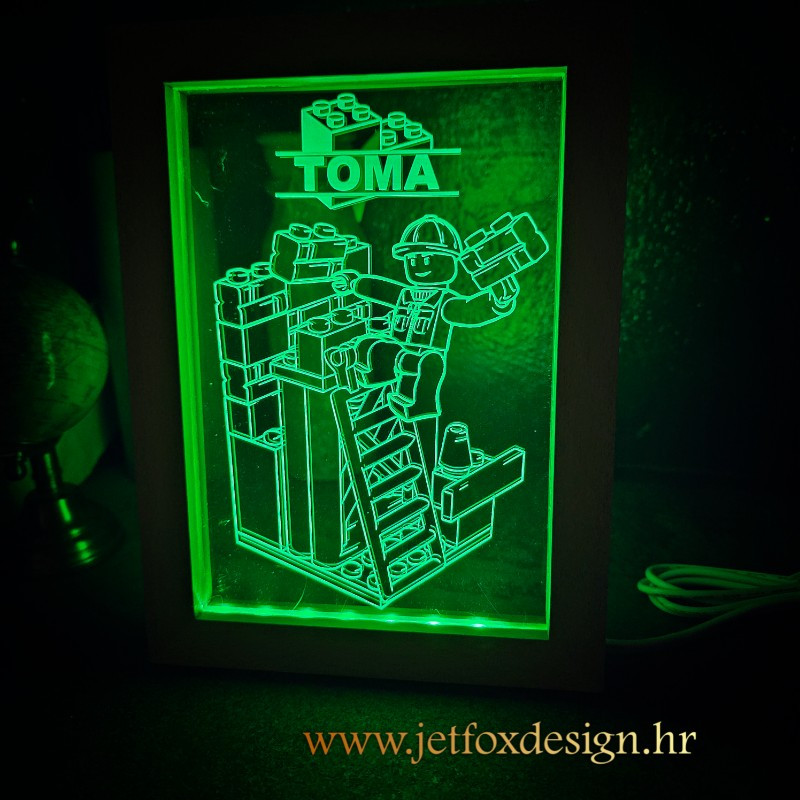 Personalizirana lampa lego graditelj s imenom dječja je LED lampa inspirirana svijetom gradnje, mašte i kreativnosti. Motiv graditelja s kockicama simbolizira igru, stvaranje i dječju znatiželju, dok ime djeteta lampu čini osobnom i posebnom. Ova lampa nije samo dekoracija, već dio dječjeg svijeta u kojem se ideje pretvaraju u male projekte.