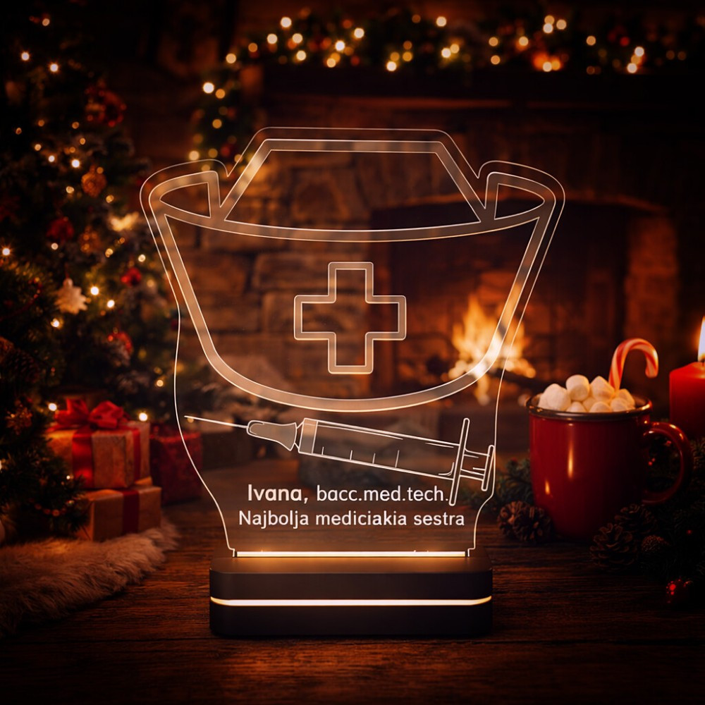 Personalizirana lampa za medicinsku sestru dekorativna je LED lampa osmišljena kao znak poštovanja, zahvalnosti i priznanja za trud koji se često uzima zdravo za gotovo. Lampa se izrađuje po narudžbi te se personalizira imenom i kratkim tekstom, čime postaje jedinstvena i osobna uspomena.
