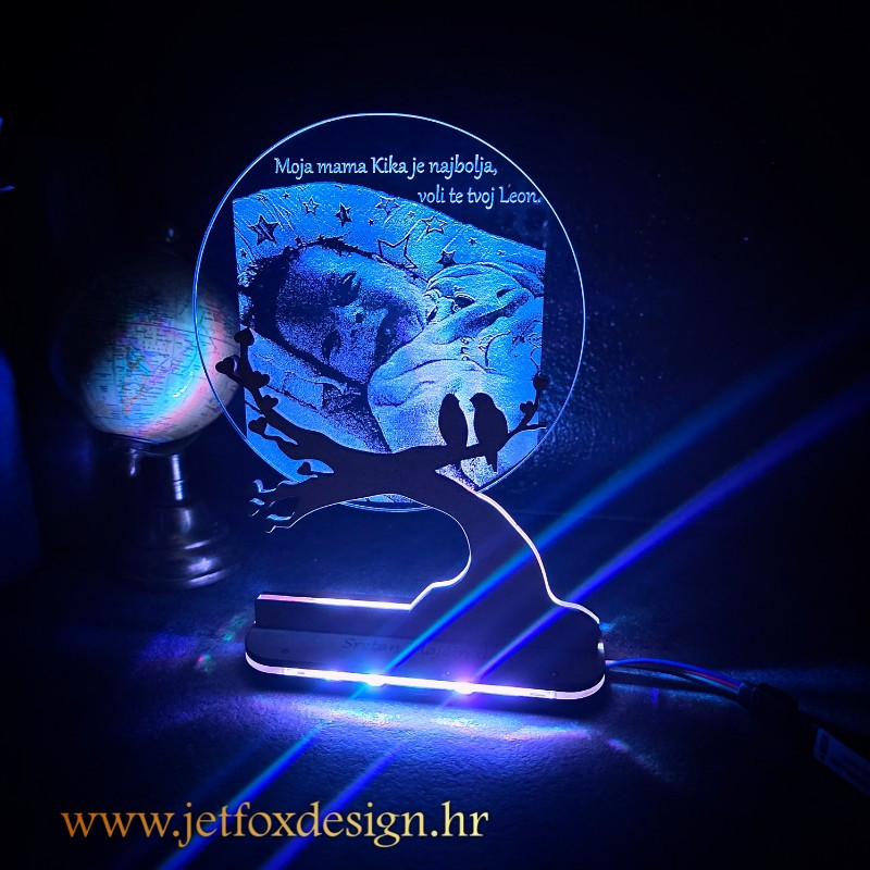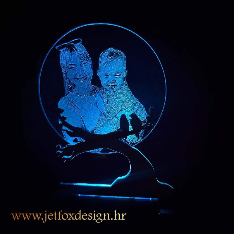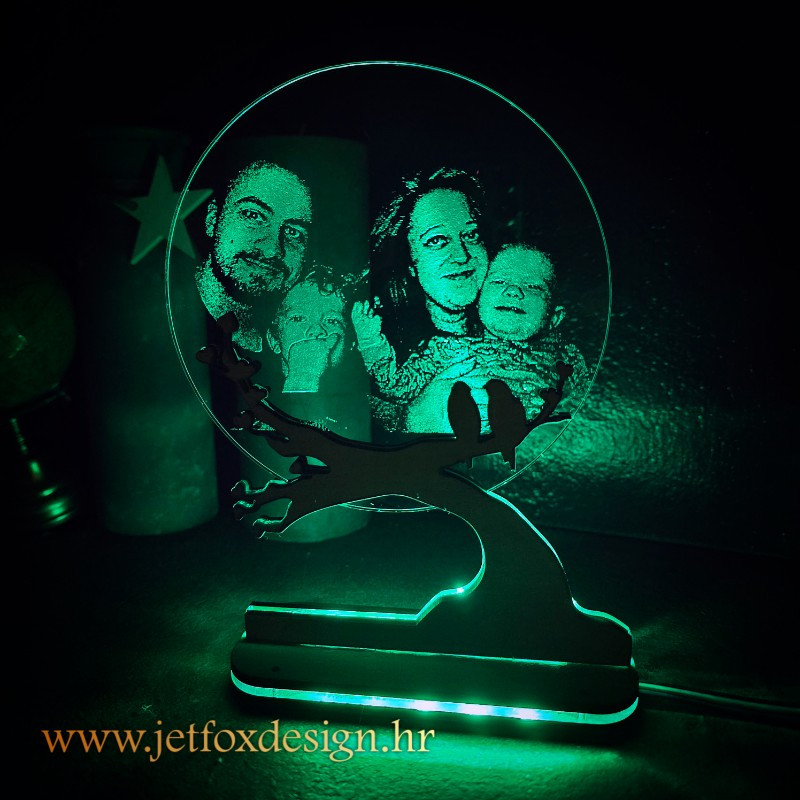 Tražite poklon koji nosi duboko značenje i unosi toplinu u prostor? Personalizirana LED lampa s fotografijom i motivom ptica na drvetu spaja umjetnost, emociju i funkcionalnost u jedan poseban ukras. S drvenim postoljem u obliku grane i pažljivo ugraviranom slikom, ova lampa donosi nježnu svjetlost i čuva uspomene na voljene osobe.