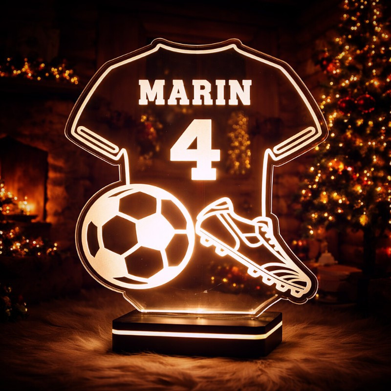 Personalizirana nogometna lampa s dresom, kopačkama i loptom savršen je poklon za male i velike nogometaše. Ime i sportski motivi stvaraju trajnu i korisnu uspomenu.
