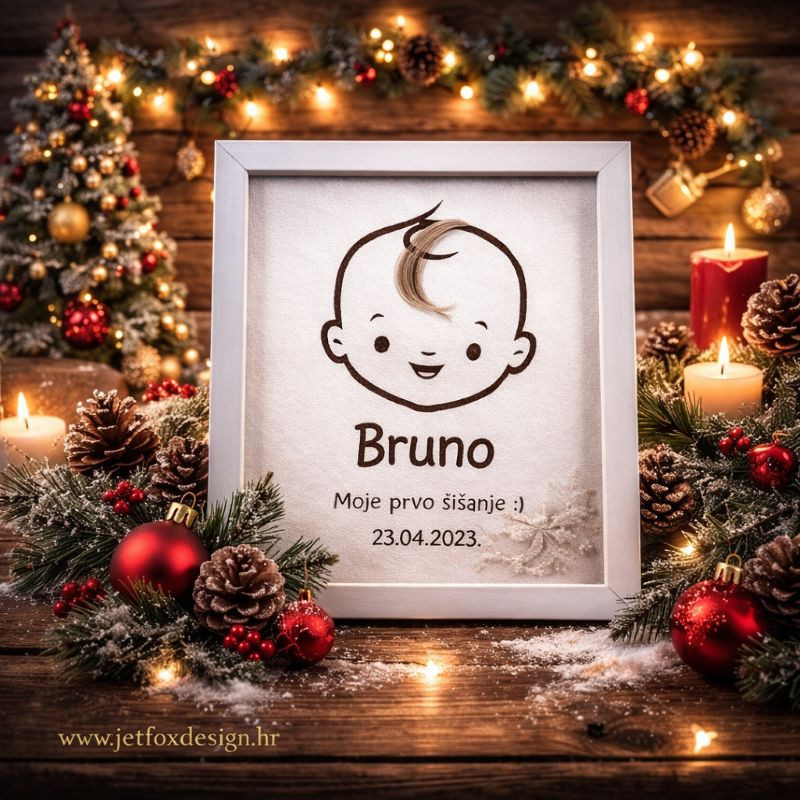 Personalizirana uspomena za prvi pramen kose dječaka osmišljena je kao trajni podsjetnik na jedan od prvih velikih trenutaka u životu djeteta – prvo šišanje. Ime i datum graviraju se prema želji, čime svaki primjerak postaje jedinstvena obiteljska uspomena.