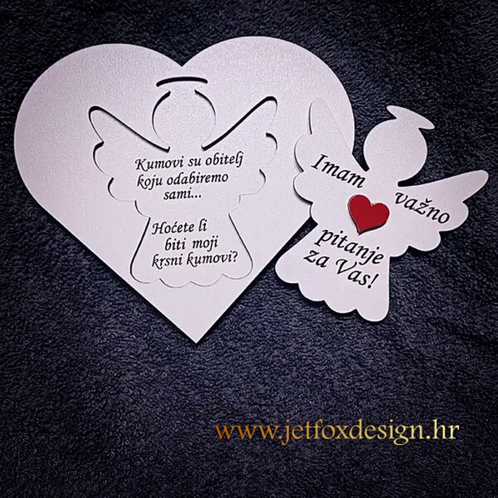 Pitalica čestitka za kumove u obliku srca s anđelom mali je predmet s velikim značenjem