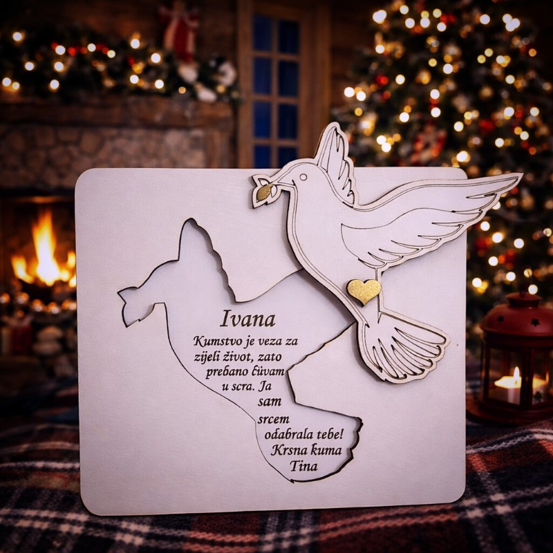 Ova pitalica nije samo čestitka, već uspomena na trenutak odluke i povjerenja. Personalizirana imenom i tekstom po želji, pitalica za kumove u obliku golubice čini samo postavljanje pitanja svečanim i dostojanstvenim. To je način da se važna odluka ne donese usput, već s pažnjom i poštovanjem.