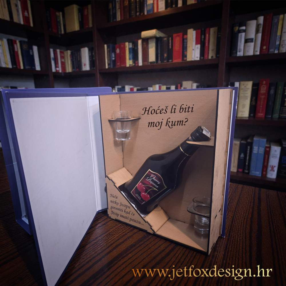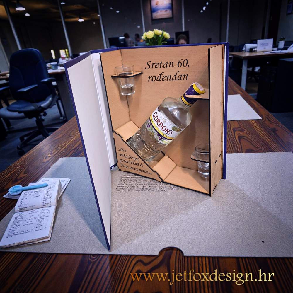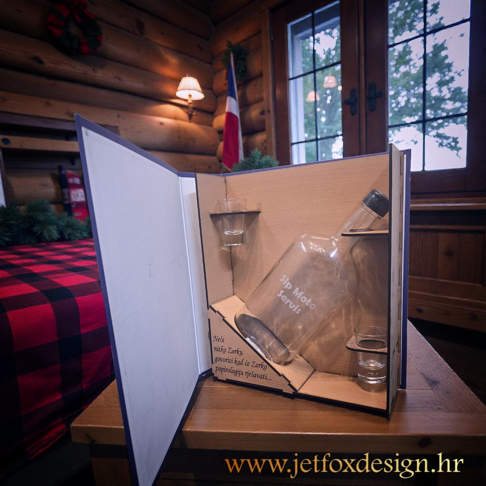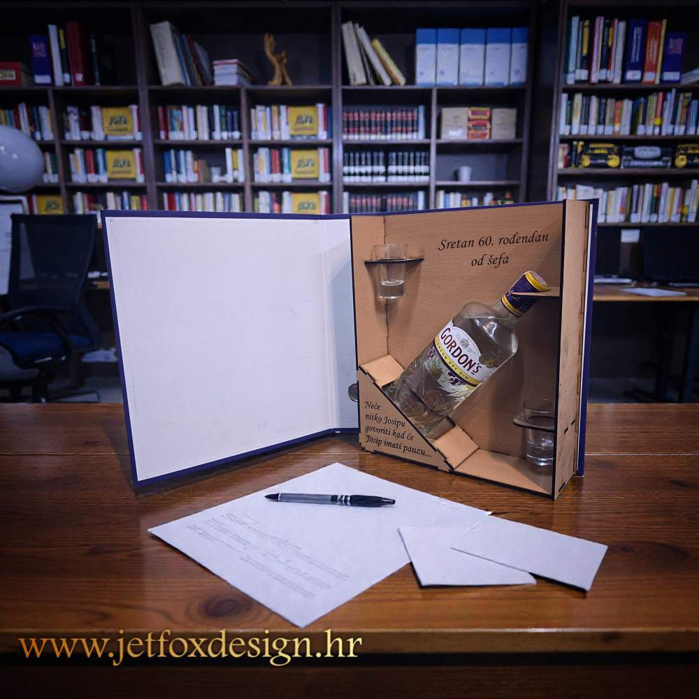 Na prvi pogled izgleda kao sasvim običan uredski registrator. No kada se otvori, slijedi iznenađenje koje nitko ne očekuje. Tajni uredski registrator s iznenađenjem skriva pažljivo izrađen drveni držač s jednom bocom i dvije čaše, potpuno personaliziran po tvojoj želji.