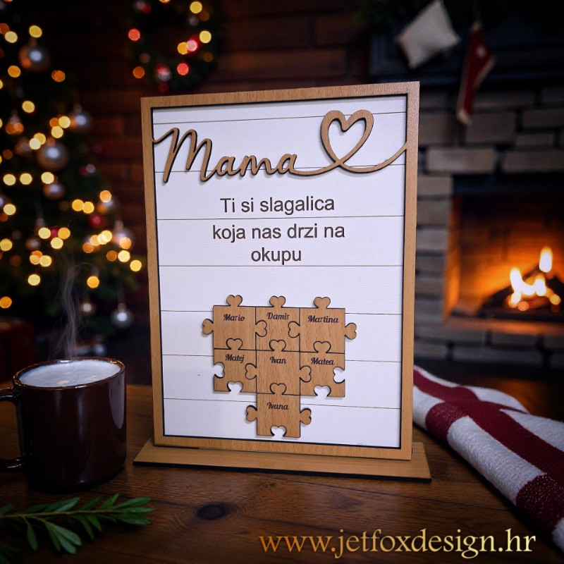 Napomena: Ako želite puzzlu na kojoj piše Mama ili Majka, potrebno je navesti u obrascu. Samo upisna imena i tekst gravirat će se na dekoraciju