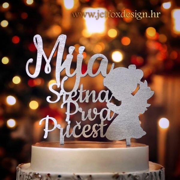 Topper za Prvu pričest s curicom anđelom savršen je za crkvena i obiteljska slavlja, fotografiranja i uspomene koje ostaju za cijeli život. Nakon proslave može se sačuvati kao trajna uspomena na dan Prve pričesti.