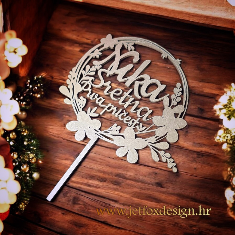 Ovaj topper za Prvu pričest može se bojati u boju po želji, a najčešći odabir su zlatna i srebrna nijansa koje dodatno naglašavaju eleganciju i svečanost. Čiste linije i uravnotežen dizajn omogućuju savršeno uklapanje uz klasične bijele, pastelne ili modernije torte. Pitate se kako tortu za Prvu pričest učiniti posebnom, a zadržati profinjen i miran izgled? Upravo ovakav topper daje pravi odgovor.