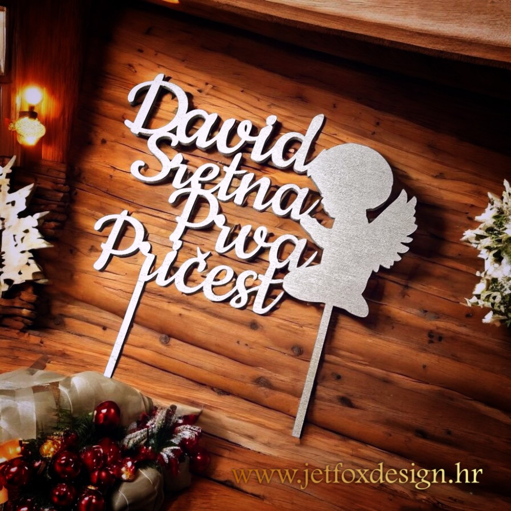 - Topper za tortu izrađeni od drveta bojani po želji kupca
