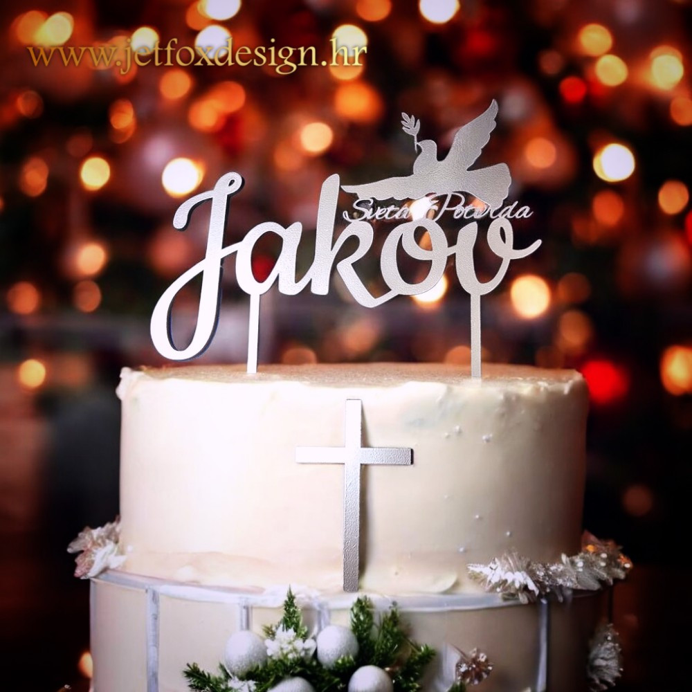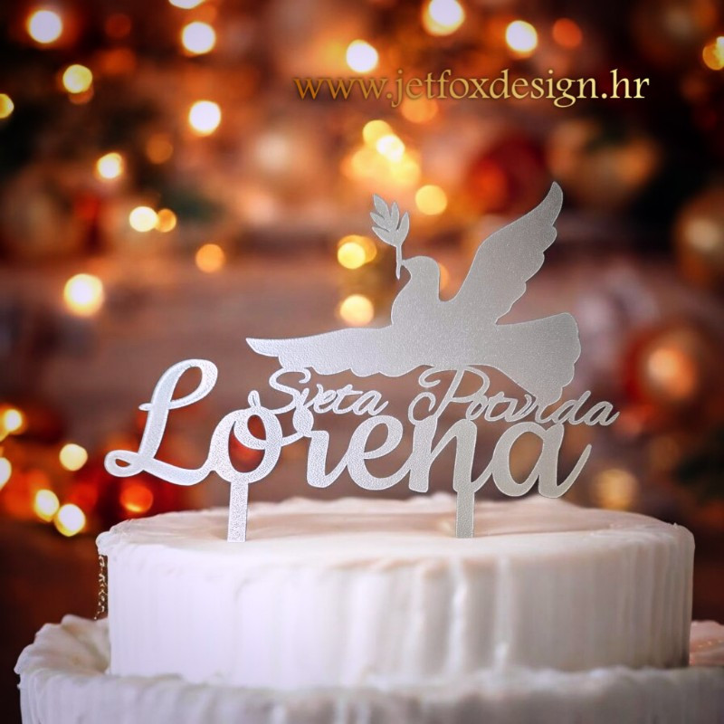 Personalizirani toper za Svetu potvrdu s imenom i motivom golubice osmišljen je kao dostojanstven i simboličan ukras za tortu povodom Svete potvrde. Golubica simbolizira Duha Svetoga, mir i snagu vjere, dok ime krizmanika daje osobnu vrijednost i čini tortu posebnim dijelom ovog važnog sakramenta.