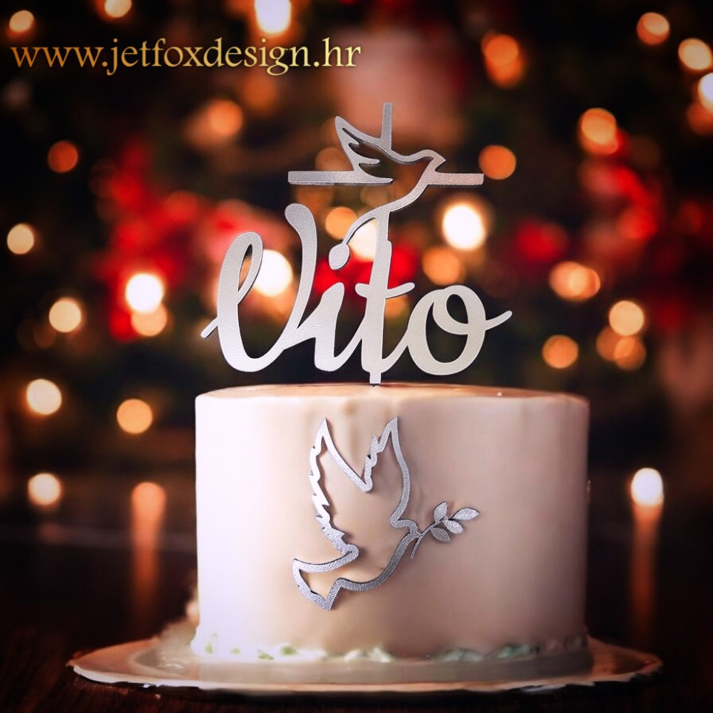 Personalizirani toper za tortu s motivom golubice i križa osmišljen je kao snažna i elegantna dekoracija za krizmu, ali i za druge svečane prigode poput krštenja, Prve pričesti i obiteljskih slavlja. Golubica simbolizira Duha Svetoga, mir i vjeru, dok križ daje jasno duhovno značenje i dostojanstvo cijelom dizajnu.