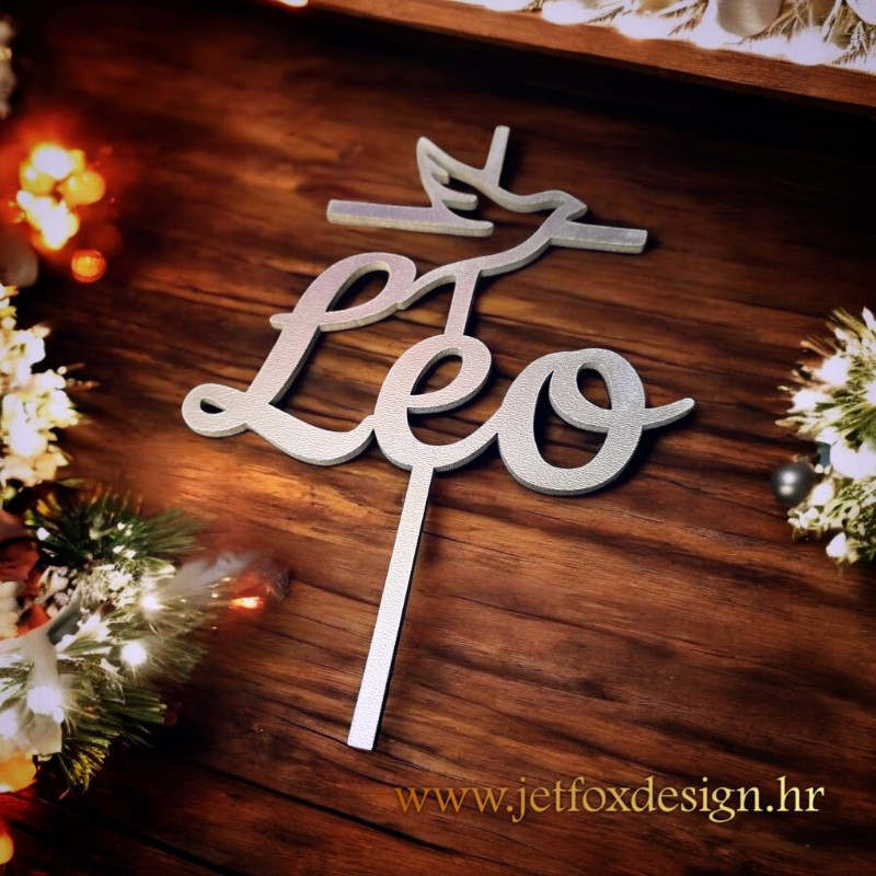 Ovaj toper za tortu nudi dvije mogućnosti personalizacije: ime može biti izrađeno kao bočni zasebni topper koji se postavlja uz tortu ili kao ime integrirano u veliki topper, čime se postiže skladan i upečatljiv izgled. Pitate se kako jednom dekoracijom zadovoljiti različite stilove torti i želje obitelji? Upravo ova prilagodljivost daje odgovor.