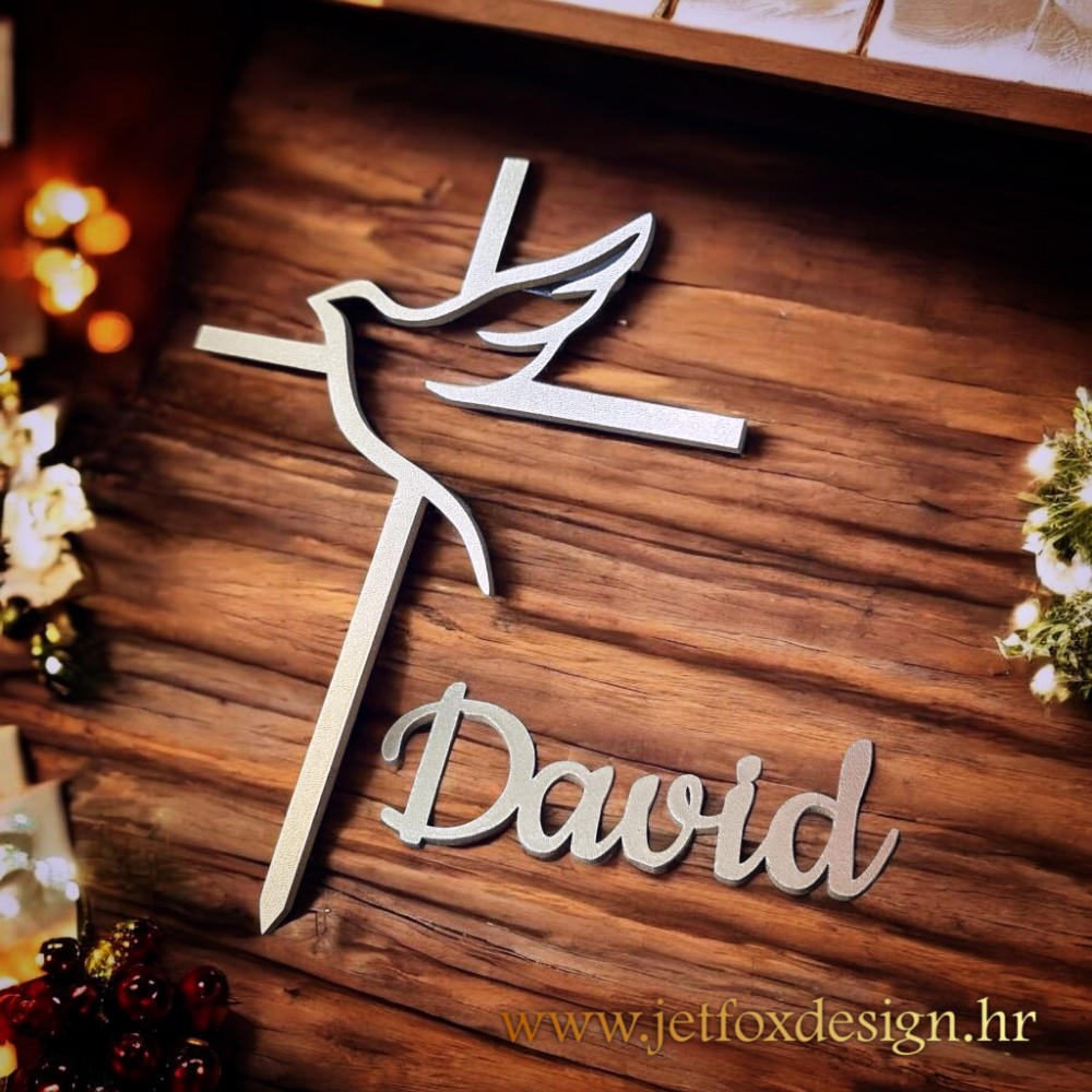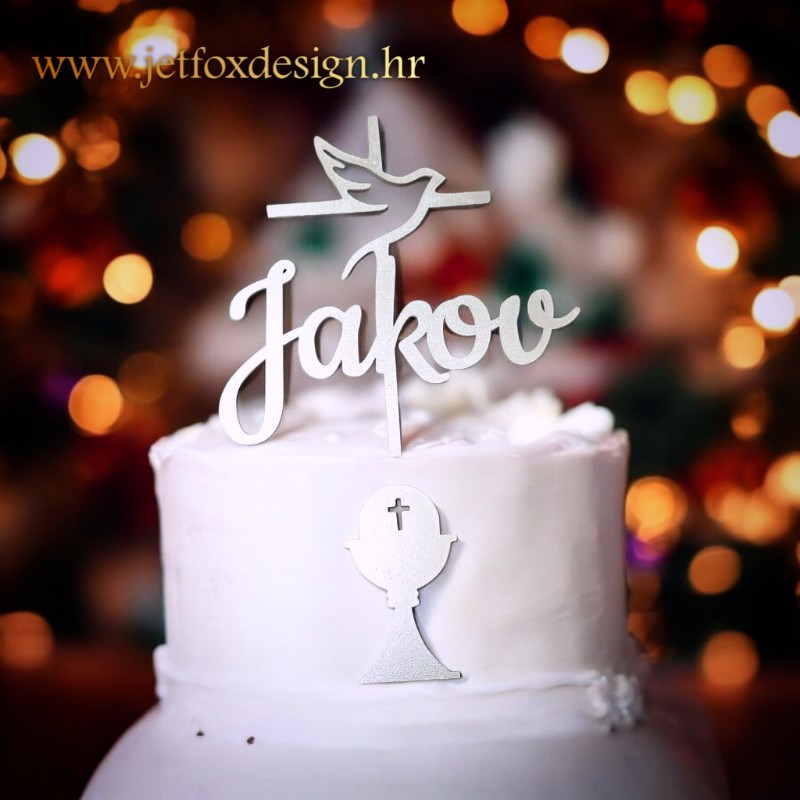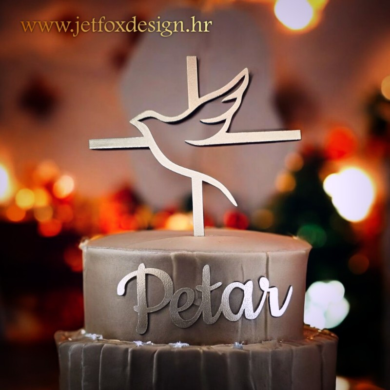 Toper s golubicom i križem savršen je izbor za sve koji žele nenametljiv, ali snažan simbol vjere. Jednostavne linije omogućuju uklapanje uz klasične i moderne torte, a nakon slavlja toper se može sačuvati kao trajna uspomena.