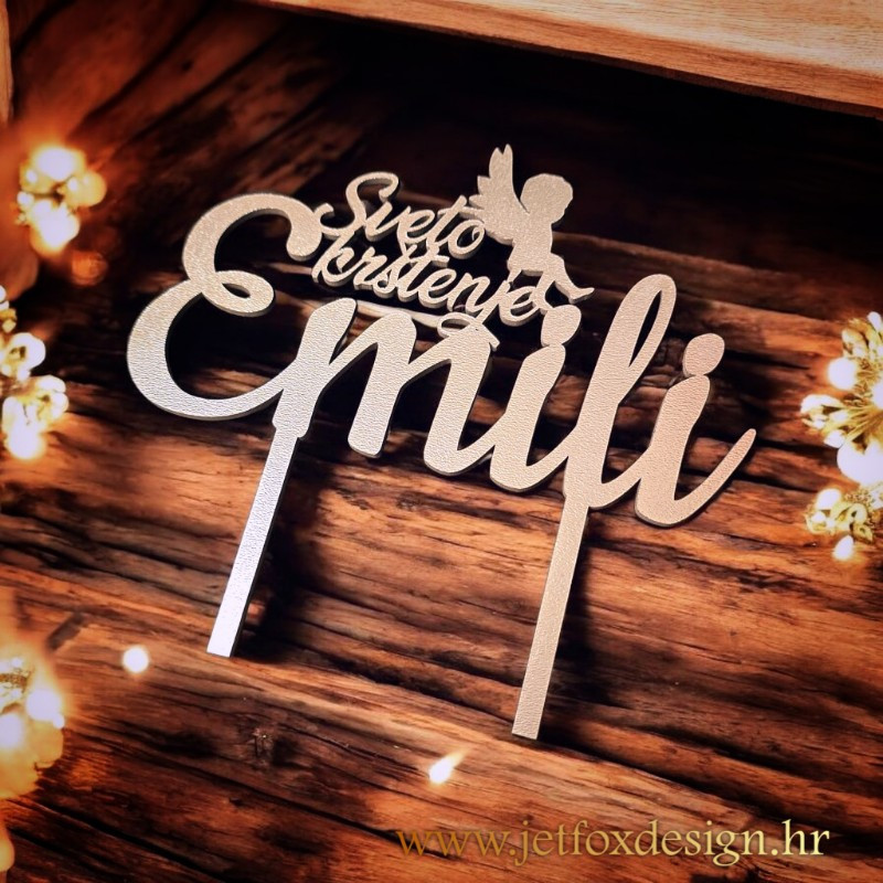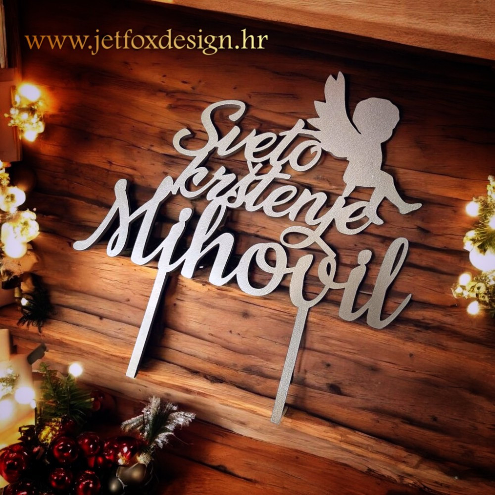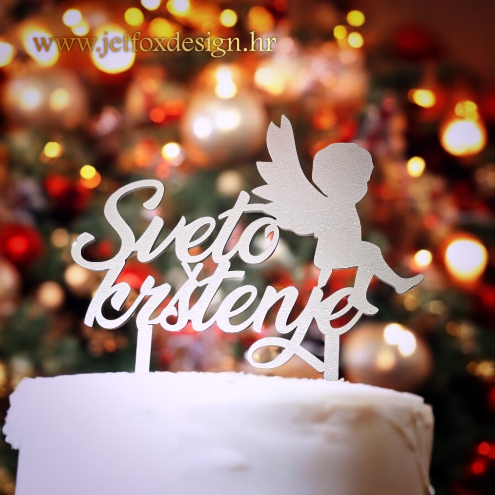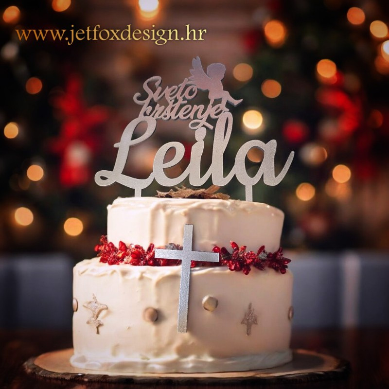 Personalizirani toper za sveto krštenje s imenom i anđelom osmišljen je kao nježan i simboličan ukras za tortu na dan krštenja. Motiv anđela predstavlja zaštitu, mir i blagoslov, dok ime djeteta daje osobnu notu i pretvara tortu u važan dio uspomene na ovaj poseban sakrament.