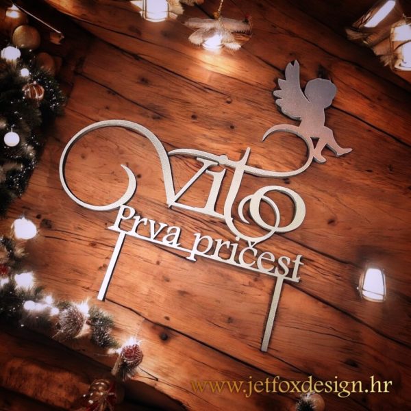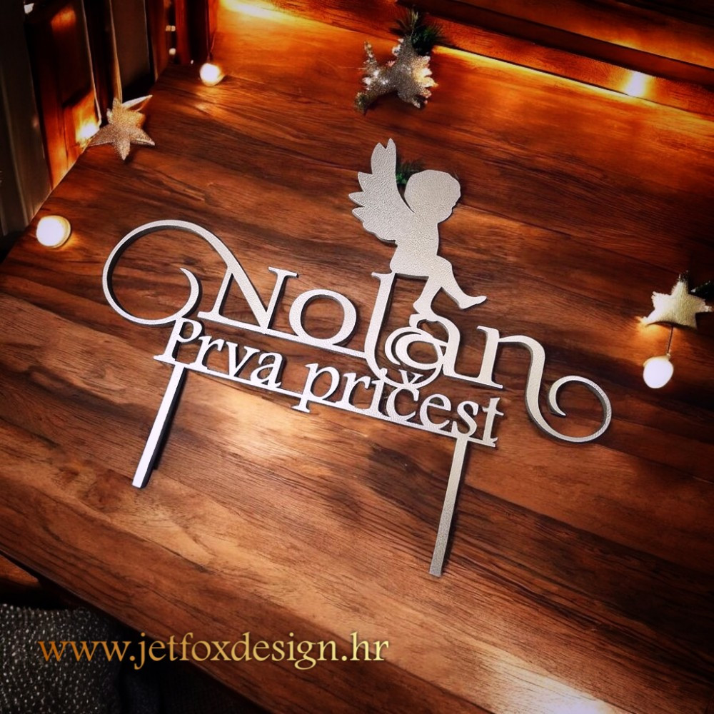 Topper za tortu Prva pričest s imenom i motivom malog anđela nježan je i simboličan ukras koji naglašava svečanost pričesti i ostaje lijepa uspomena.
