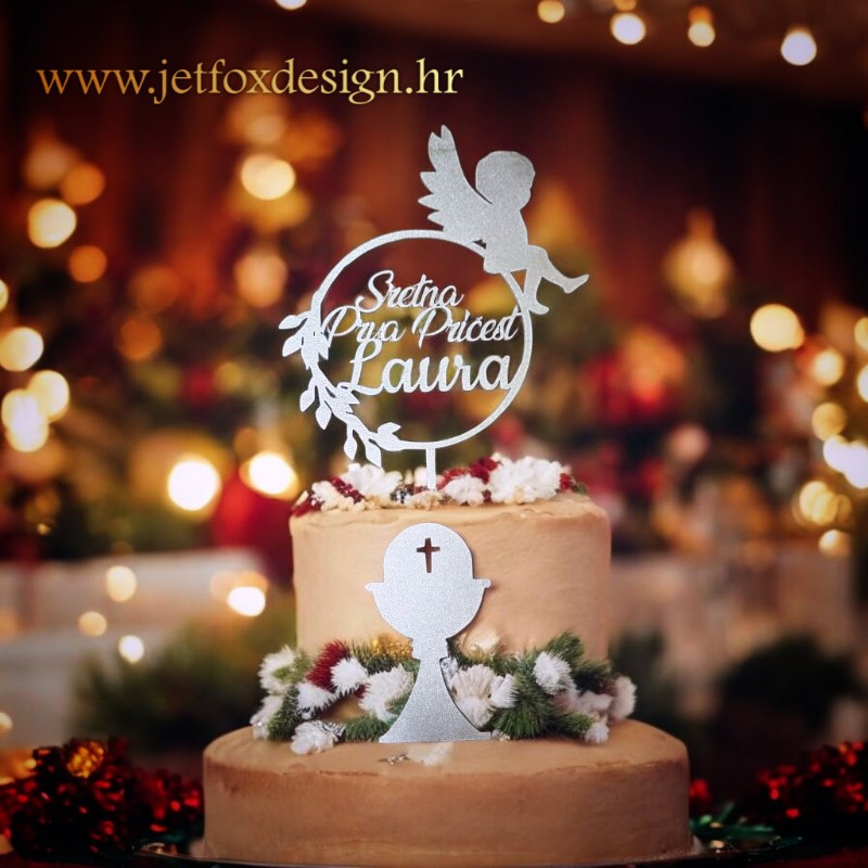 Topper za tortu Sretna prva pričest s anđelom u vijencu