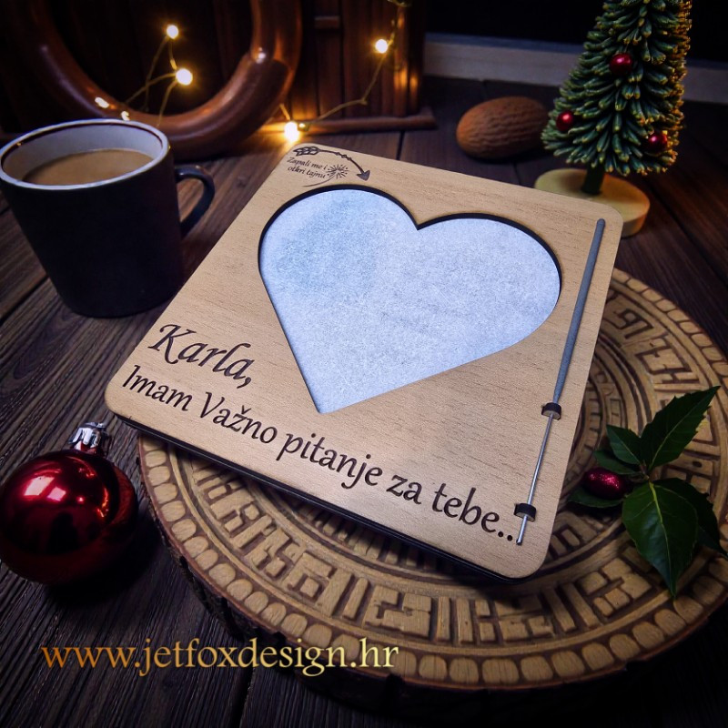Oblik srca jasno prenosi poruku ljubavi, bliskosti i povezanosti, zbog čega je ova zapaljiva vatrena pitalica idealna za osobna i važna pitanja. Najčešće se koristi za pitanja poput: hoćeš li biti moja krsna kuma, hoćeš li biti moja krizmana kuma, hoćeš li mi biti vjenčana kuma ili kum, ali jednako je prikladna i za romantične prigode, godišnjice ili posebne zahvale.